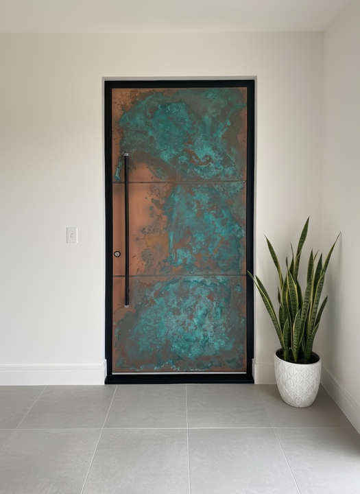 Входная дверь с отделкой «Патинированная медь» LUX-0331